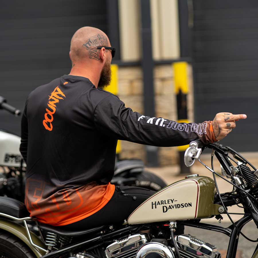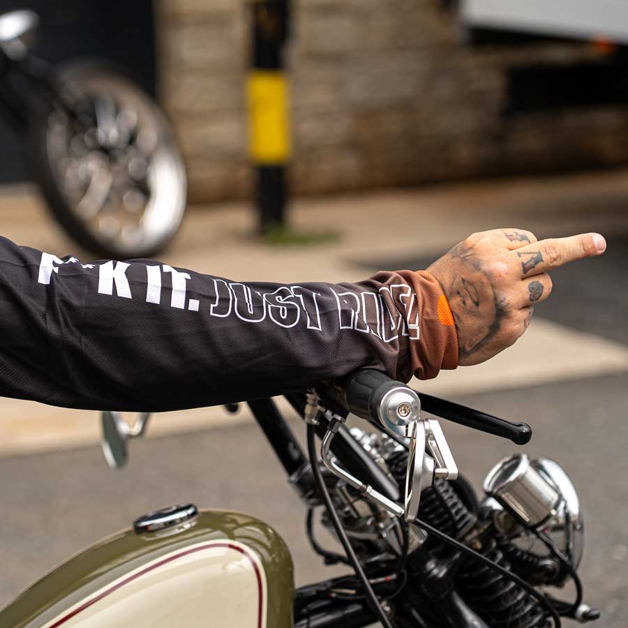 BOBHEAD Speedway Moto Jersey. Crafted from durable polyester double-knit interlock, it’s resistant to wrinkles, soft, and breathable—making it perfect for daily use or over armour. This long-sleeve top is uniquely styled with custom all-over graphics in a palette that complements the BOBHEAD brand.