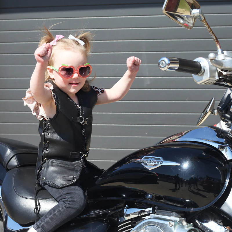 Dress them up just like Mum & Dad in the Kid’s Capricorn vest. A classic Johnny Reb design in Kid’s & Youth sizing, that doesn’t compromise on design or quality. An adorable gift or keepsake for any kid that is destined for the road some day. Adjustable side laces for custom fit High quality soft durable leather Twin front pockets Hand braided edges all around Designed for riding comfort Satin lined Hook closure for firm grip Internal pocket