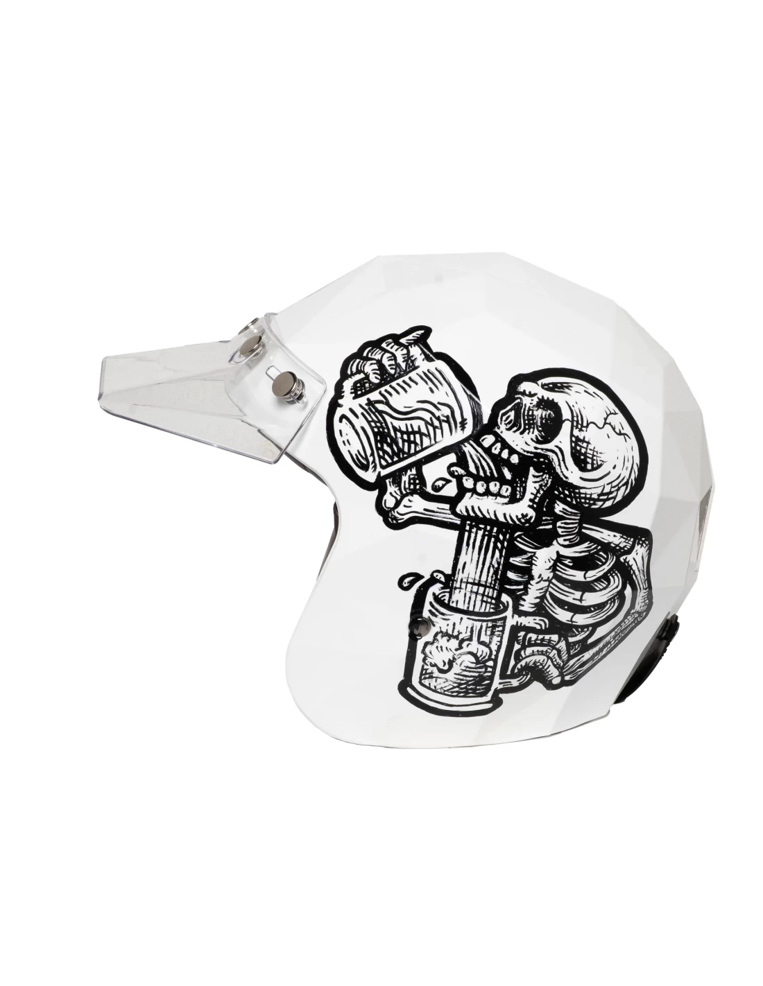 The design of the visor with geometric cuts marries the style of the Stealth helmet with the glorious 70s of motocross